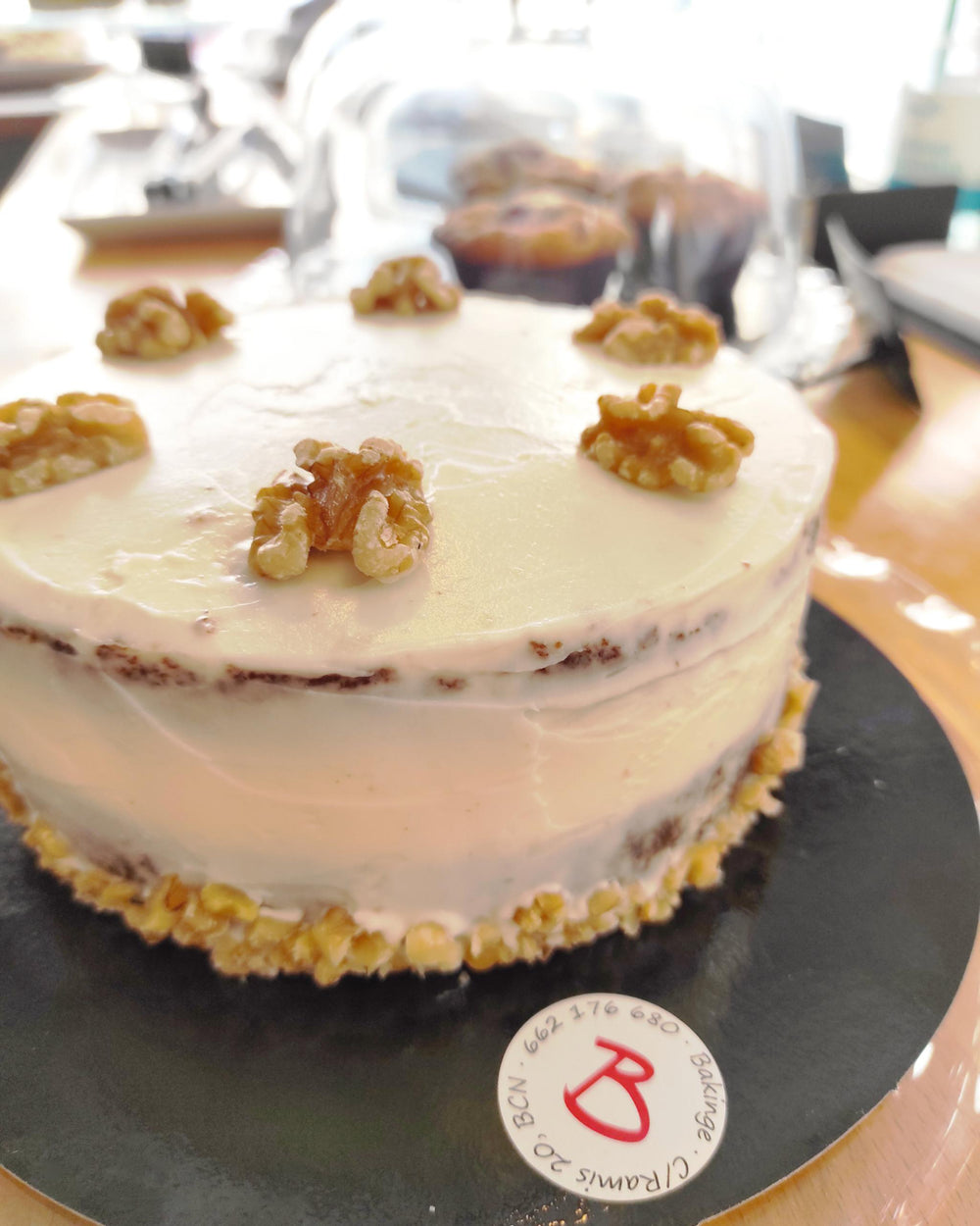 Our carrot cake is moist, perfectly spiced, filled with smooth cream cheese and walnuts for crunch.